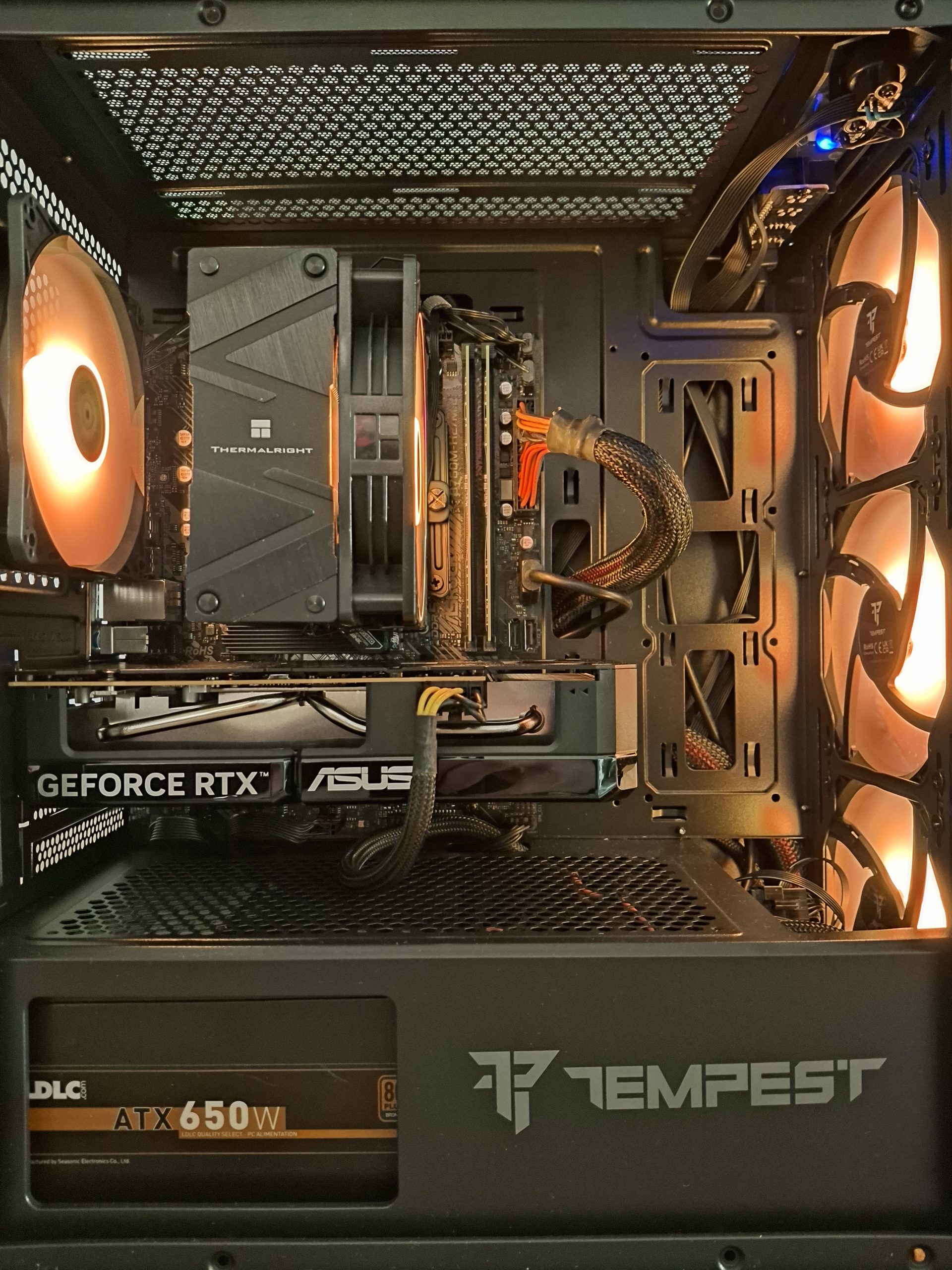 ▶ Boitier TEMPEST GARRISON ARGB NEUF, avec paroi latérale en verre trempé, équipé de 4 ventilateurs thermalright LED pilotable du boitier ou via logiciel